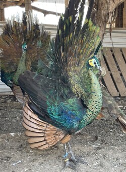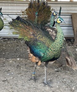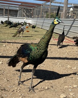 Coming 2 yrs old 2024 hatch Import Pavo Muticus rooster available. He is a very nice representation of true green peafowl bred here at Bob’s Green Peafowl. Shipping is available via the USPS, no international shipping, pickup onsite in Salado, Texas is encouraged. For more info text or call Gerald Barker @ (254) 702-1563. Visit www.bobsgreenpeafowl.com for more available birds.