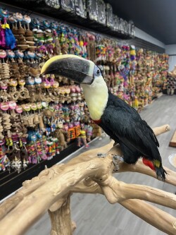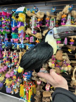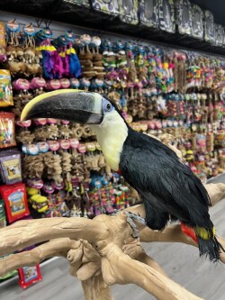 Red Billed Toucan available hand fed 2025 hatch female. Call us for more info 773 317 3785.