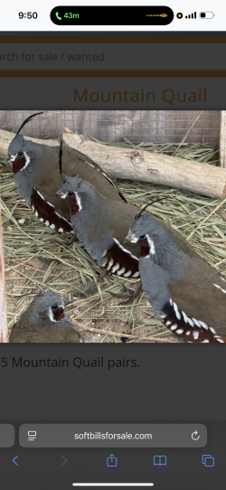 Hello, I have 2 males and 4 female 2024 mountains, and 2 2025 females. 8 birds total, want to sell as a group. $800 obo plus box and shipping. text prefered 360-513-7178