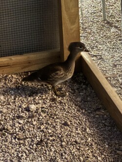 Young female Mandarin duck ready to breed—the male escaped my son.