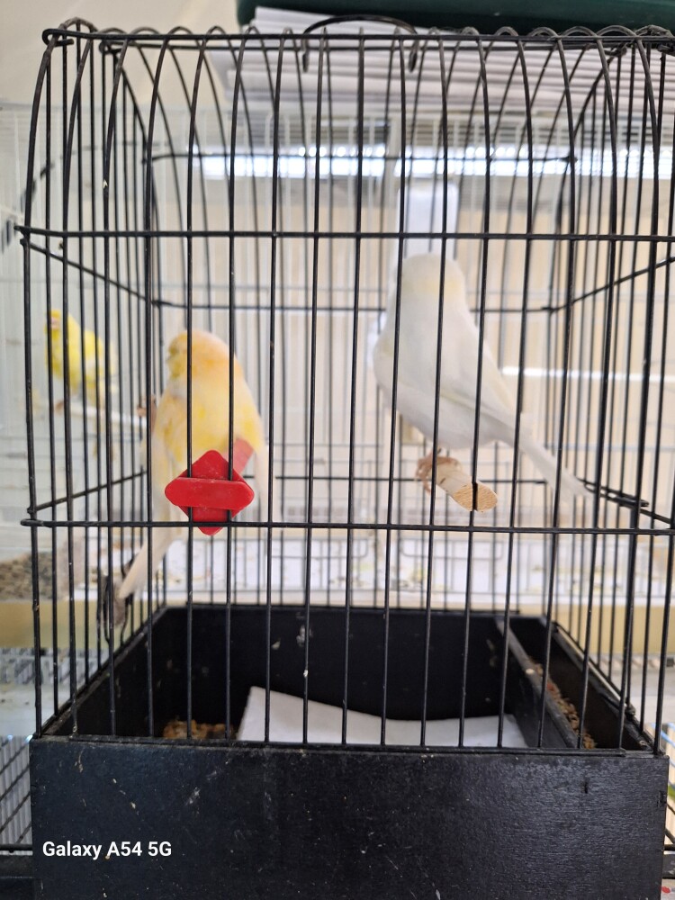 Very nice pair of Norwich Canaries for sale. Male is solid white bird and hen is solid buff. This pair are 2025 birds raised by myself in my aviary. Shipping is available for an additional $75.00