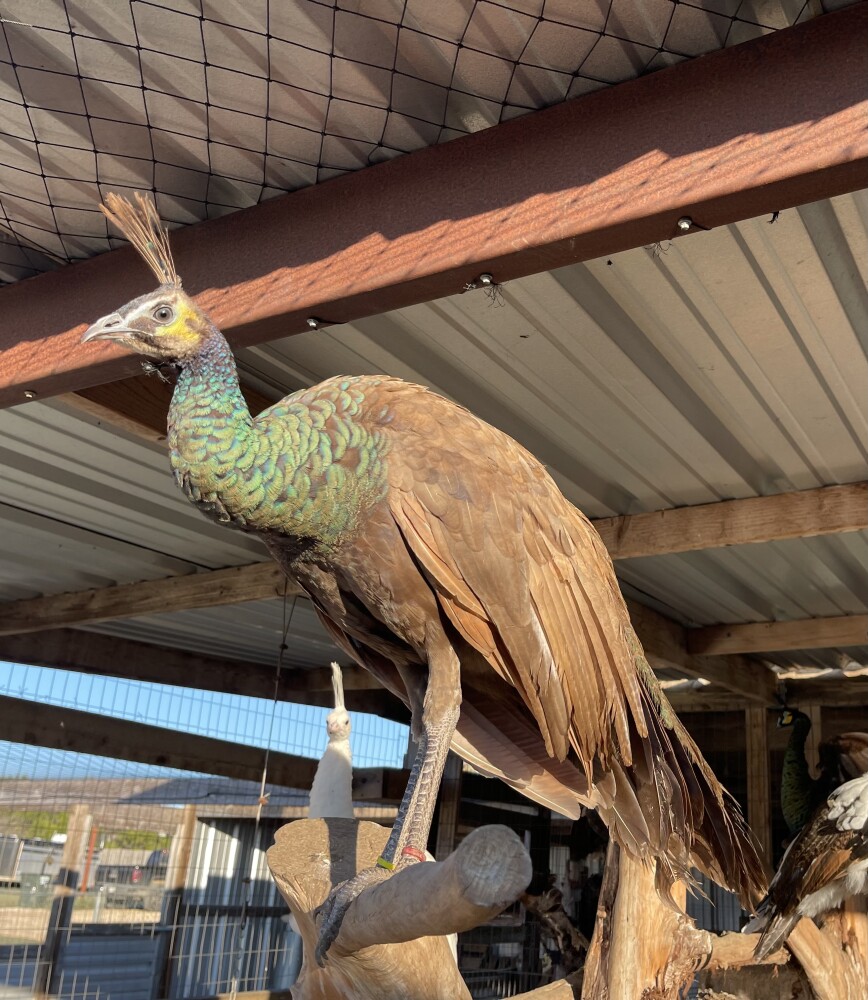 Pheasants 2023 hatch Timminch male 2024 hatch pair peach splash 2025 hatch red Golding pair, Amherst pair with extra male Peafowl Black shoulder breeder pair 2025 hatch black shoulder hen, purple pair with extra hen No shipping