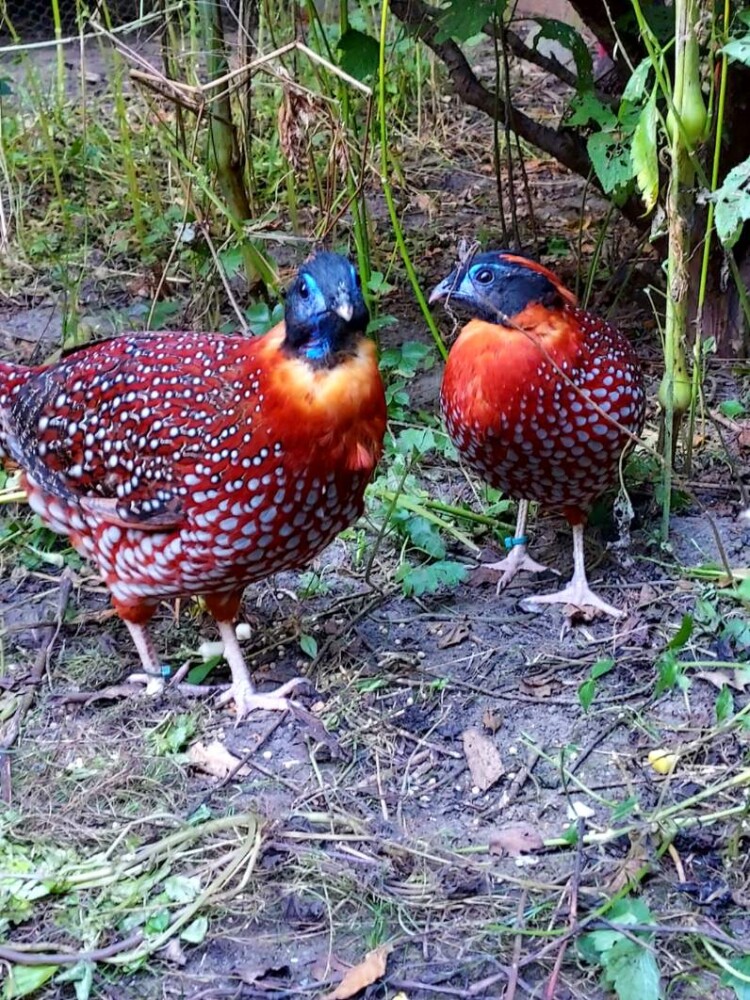 Temmnick's Tragopans breeder males displaying full color, 2025 Temmnick's Tragopans pairs available. Call we'll talk about to "BIRDS"